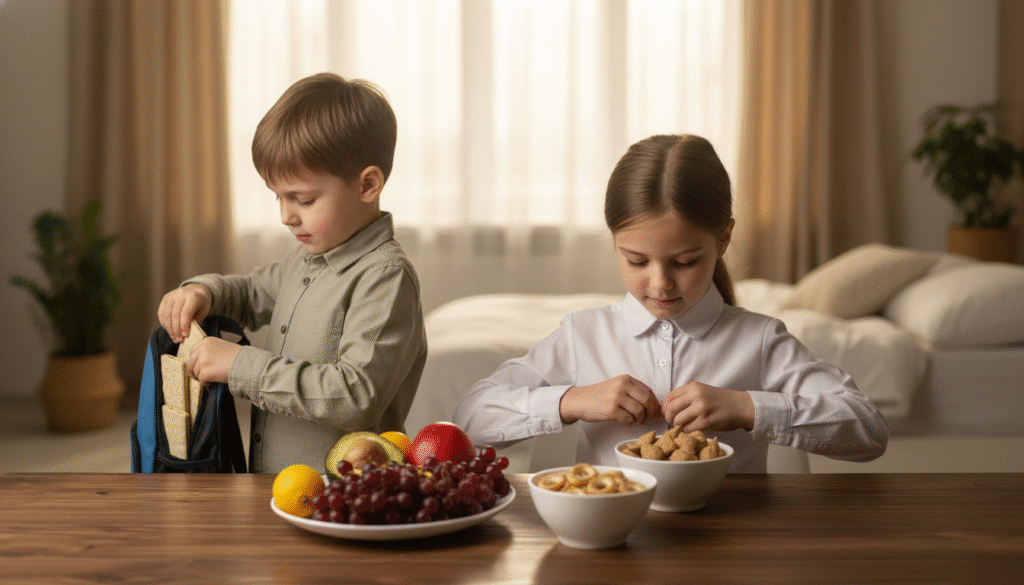 • Prepare breakfast items in advance — overnight oats, muffins, or pre-cut fruit.