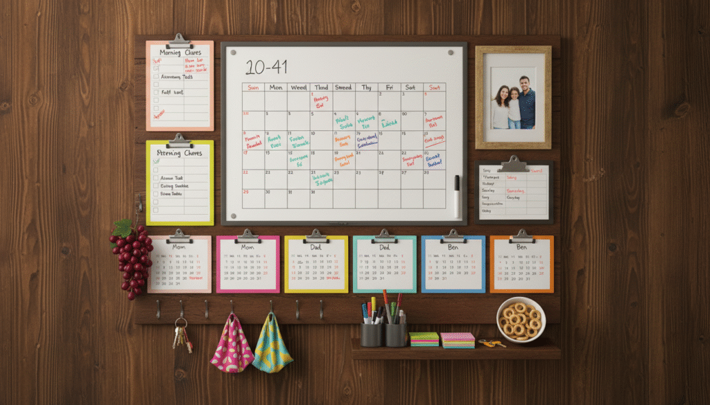 A “family command center” can be a game-changer for busy households. It’s simply a designated space — on a wall, whiteboard, or digital app — where you track family tasks and schedules.