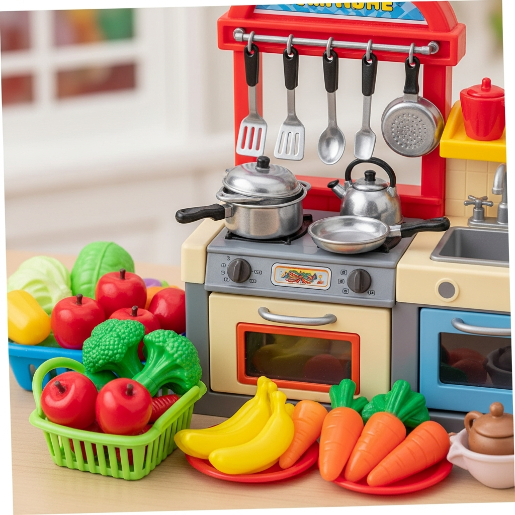 Dramatic play in a pretend kitchen allows toddlers to mimic the adults in their lives. This type of role-playing is essential for social-emotional development and understanding social roles. It also provides opportunities for language use as they describe the meals they are preparing or interact with playmates in a shared domestic scenario.