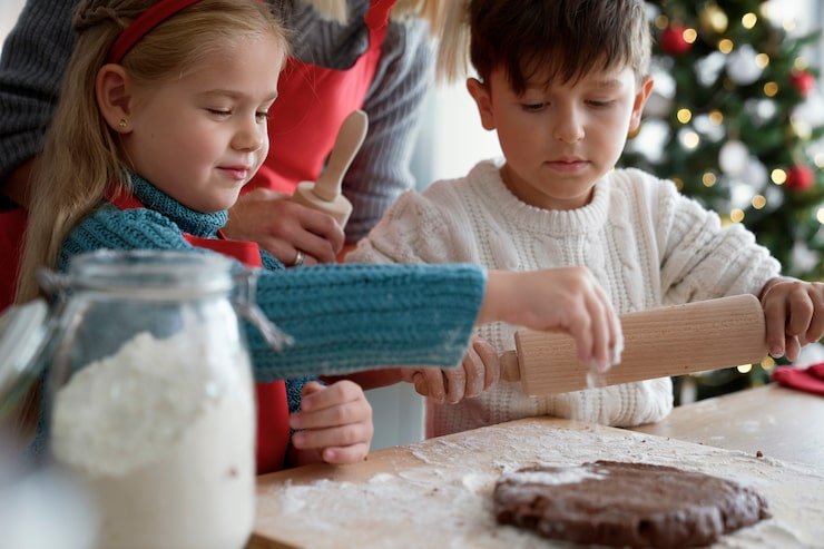 Make your own “snow” play dough using flour, oil, and glitter. Add peppermint extract for a wintery scent. Toddlers can roll, press, and create mini snowmen while strengthening their little hands.